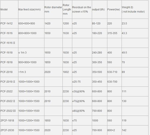 Maximum feeding size is 1.3-1.5m; 3-150mm of discharging size.