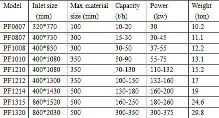 It can deal with raw materials with compressive strength less than 350Mpa and size less than 500 mm. For example, it can crush granite, limestone, concrete and other similar materials.