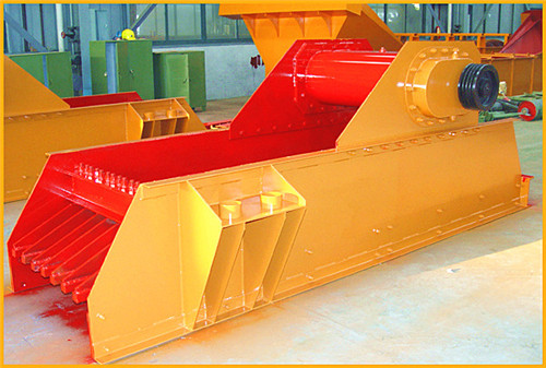 Vibrating Feeder (Vibratory feeder) is used to transfer the large size materials and granular materials from hopper to receiving device uniformly, periodically and continuously in the production flow and to feed materials into the crusher continuously and uniformly also to screen the materials in the sandstone production line. The vibrating feeder is widely used to match the crushing and sieving equipments in many industries including metallurgy, coal mine, mineral dressing, building material, chemical, grinding, etc.