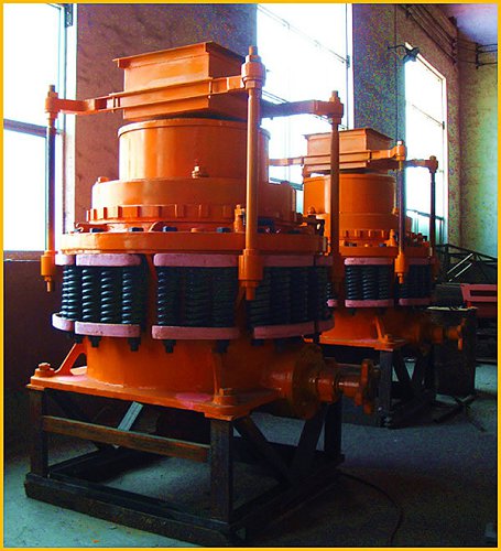 Cone crusher is suitable to crush various kinds of ores and rocks of medium or above medium hardness. Compare with jaw crusher, cone crusher is of stable structure, high efficiency, easy adjustment, economic operation, etc. The spring safety system of crusher acts as an overloading protection system that allows metal to pass through the crushing chamber so as not to damage the cone Crusher. The safety system uses dry oil and water as two kinds of sealed formation to make plaster powder and engine oil separate to make sure reliable performance. The type of crushing chamber depends upon size of feeding and fineness of crushed product. The standard type (SDY) is applied to medium crushing, the medium type is applied to medium or fine crushing and the short head type is applied to fine crushing.