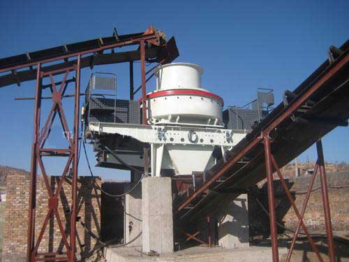 Material falls down to impellor cavity. Under great centrifugal force, it hits material that coming downwards. After hitting each other, they force a vortex between impellor and shell, and hit each other several times, finally smaller stone comes out, and goes to vibrating screen. Satisfactory material is transported by conveyor belt. However overlarge material will go back to Vertical Shaft Impact Crusher to be recrushed. Output sizes can be made according to customer’s requirement.