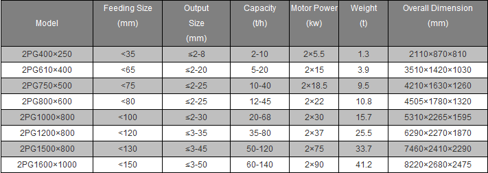 4.Parameters of roller crusher: