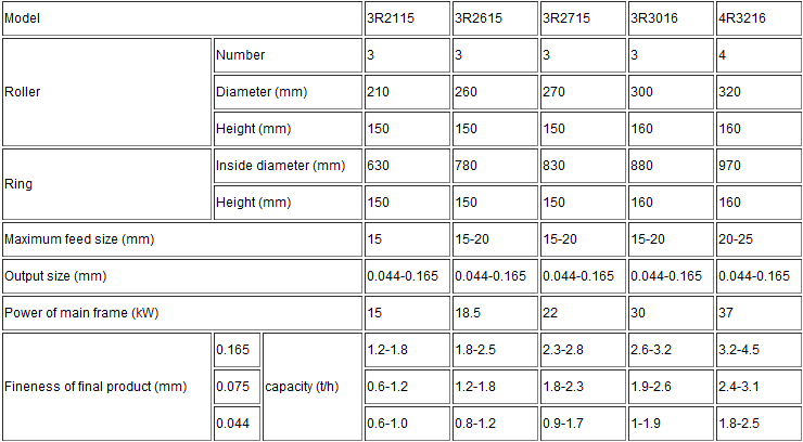 Load the stuff for grinding evenly and continuously into the grinding chamber of the main frame. Due to the centrifugal force in rotation, the roller swings outward and presses closely upon the ring. The shovel carries the stuff to the space between the roller and ring. When the roller rolls, the stuff is thus grinded.
