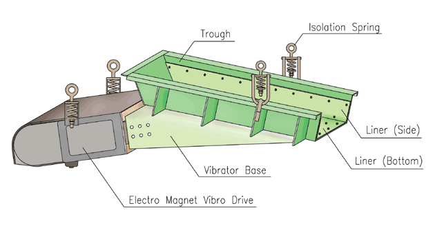 The vibrating feeder adopted vibrating motor as exciter, which is generally installed in front of the primary crusher, conveys big blocks continuously and evenly while removing the dirt and impurities by screen bars, As necessary equipment, it can effectively control the feeding capacity to match with the capacity of the whole crushing plant. It features are strong construction, easy to maintenance and operation. They are widely used in water consevancy & electricity,mining,building-materials,silicate and chemical industry in the crushing and screening plants.