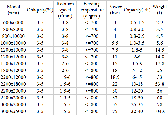 Techinical Parameter of Rotary Dryer: