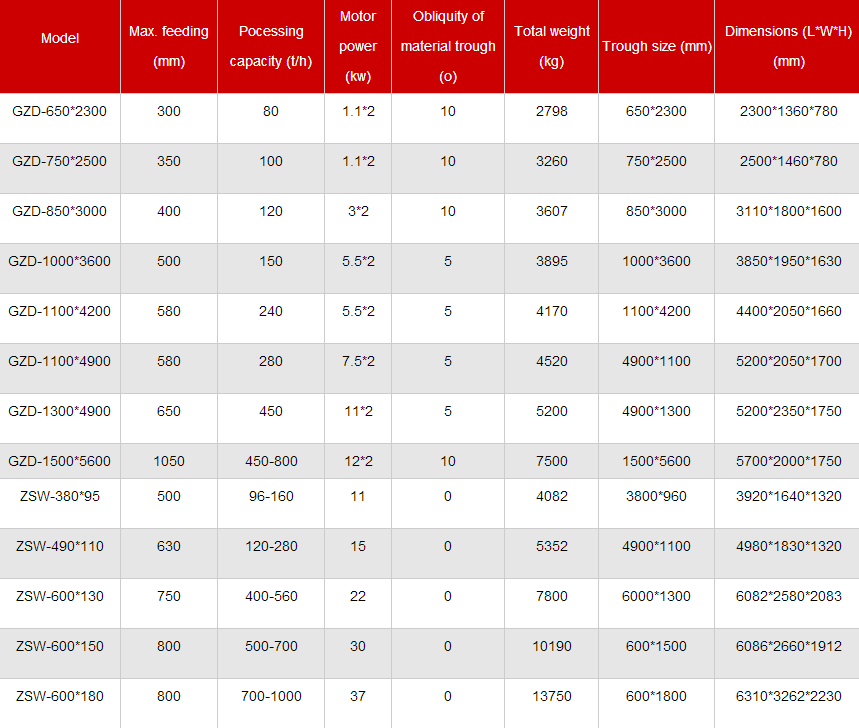 Technical Parameters of Vibrating Feeder: